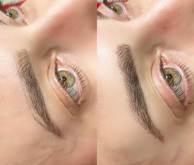 É uma técnica de design de sobrancelhas que deixa os fios mais alinhados e volumosos, ajudando a preencher as falhas e a deixar um visual mais natural.